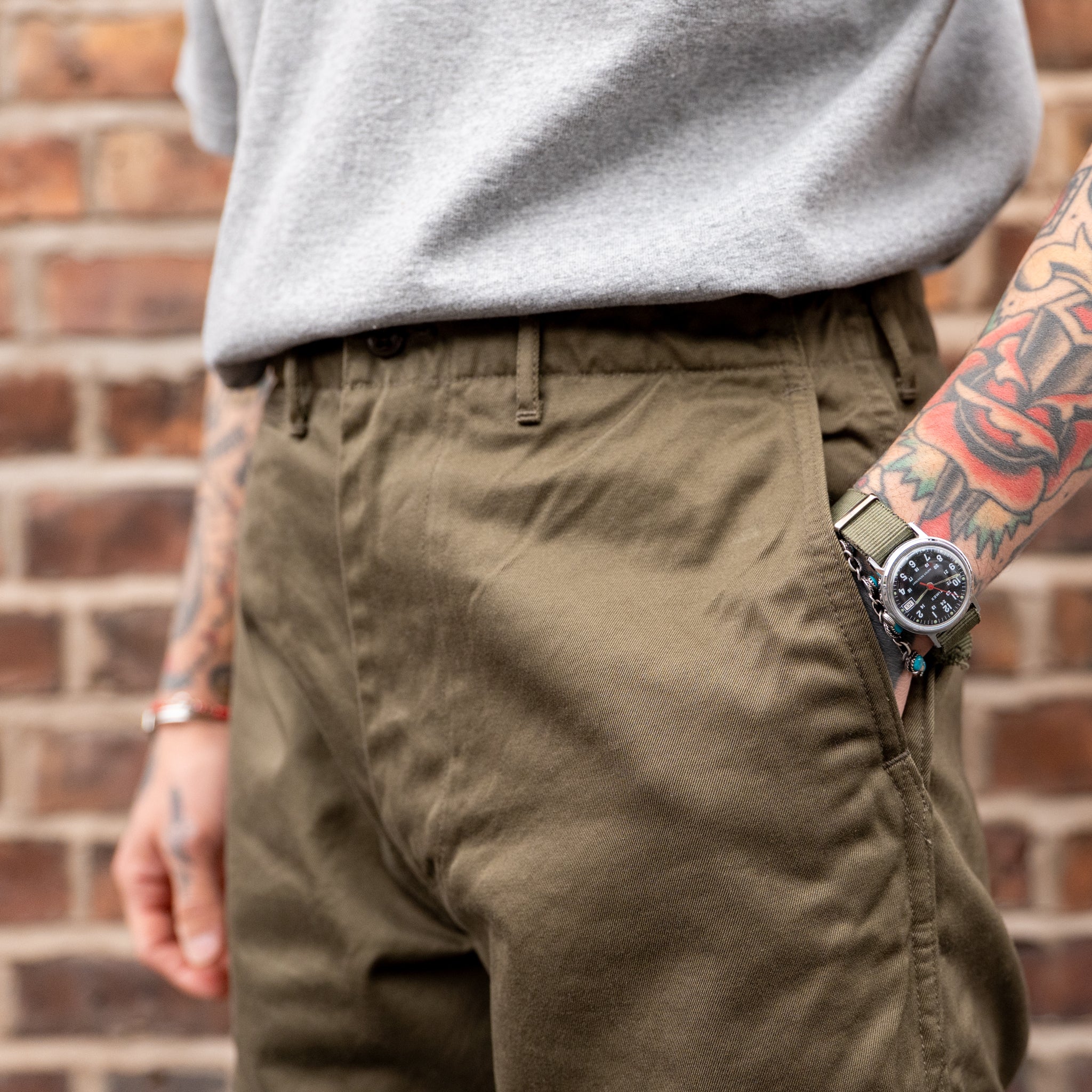 Their original spec chino is based on the 41 U.S. Military standard issue chino but with a modified spec for an easier to wear slimmed down style.
