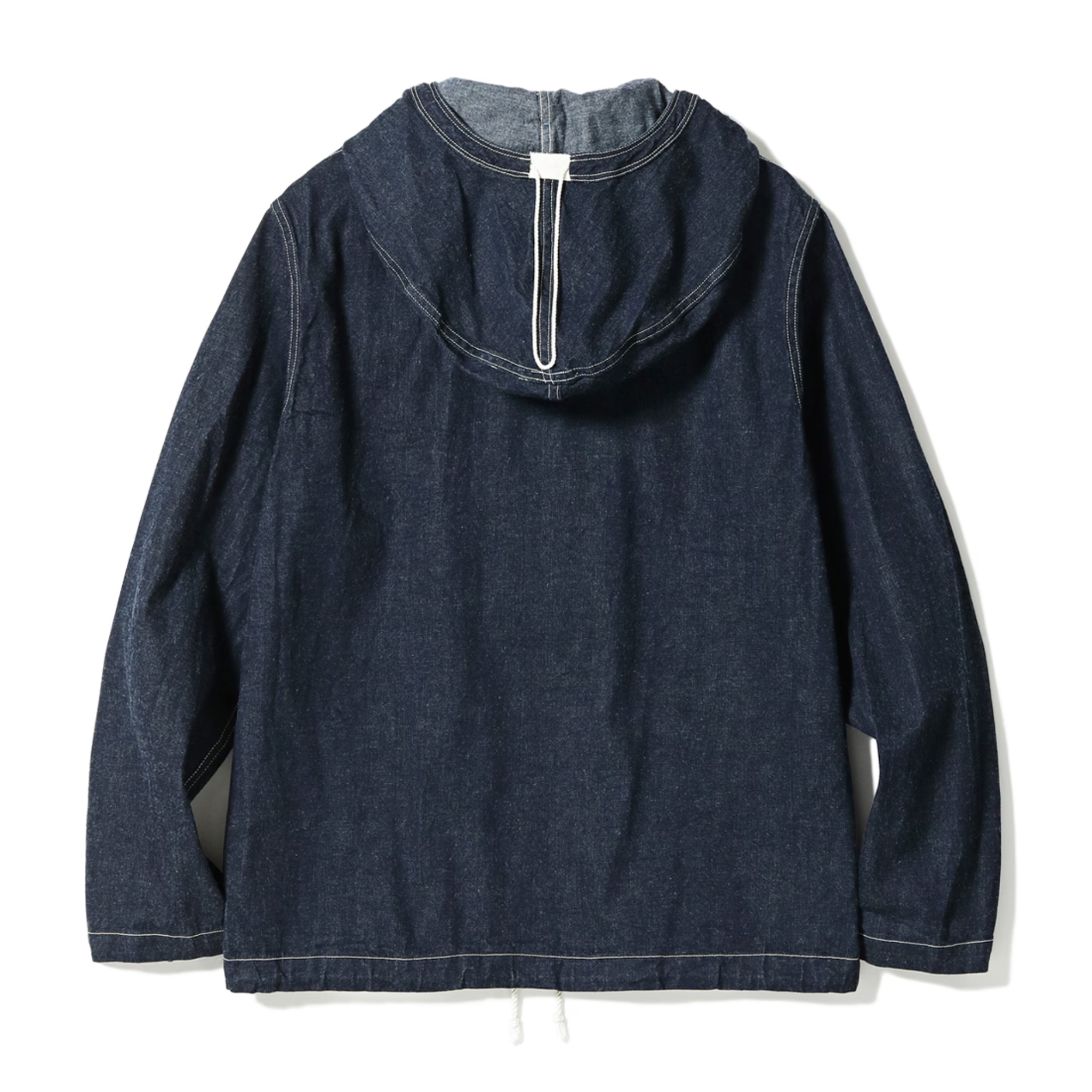 The U.S. Navy introduced the denim gas protective parka in the early 1940s as part of its chemical warfare defence system. Designed as a pullover with a loose, functional silhouette.