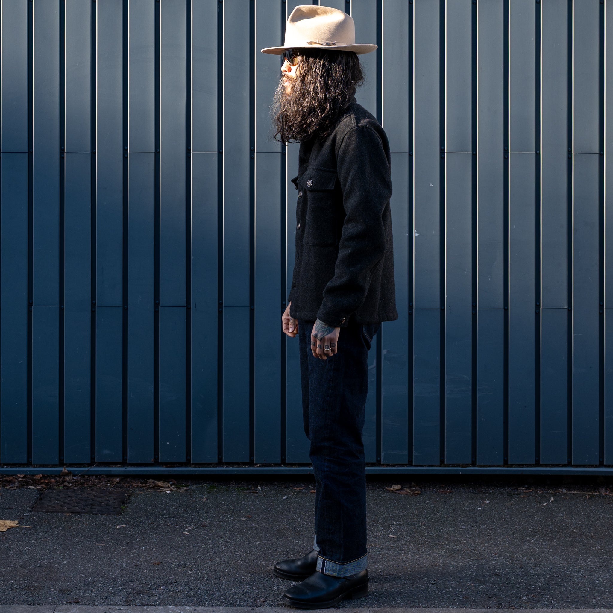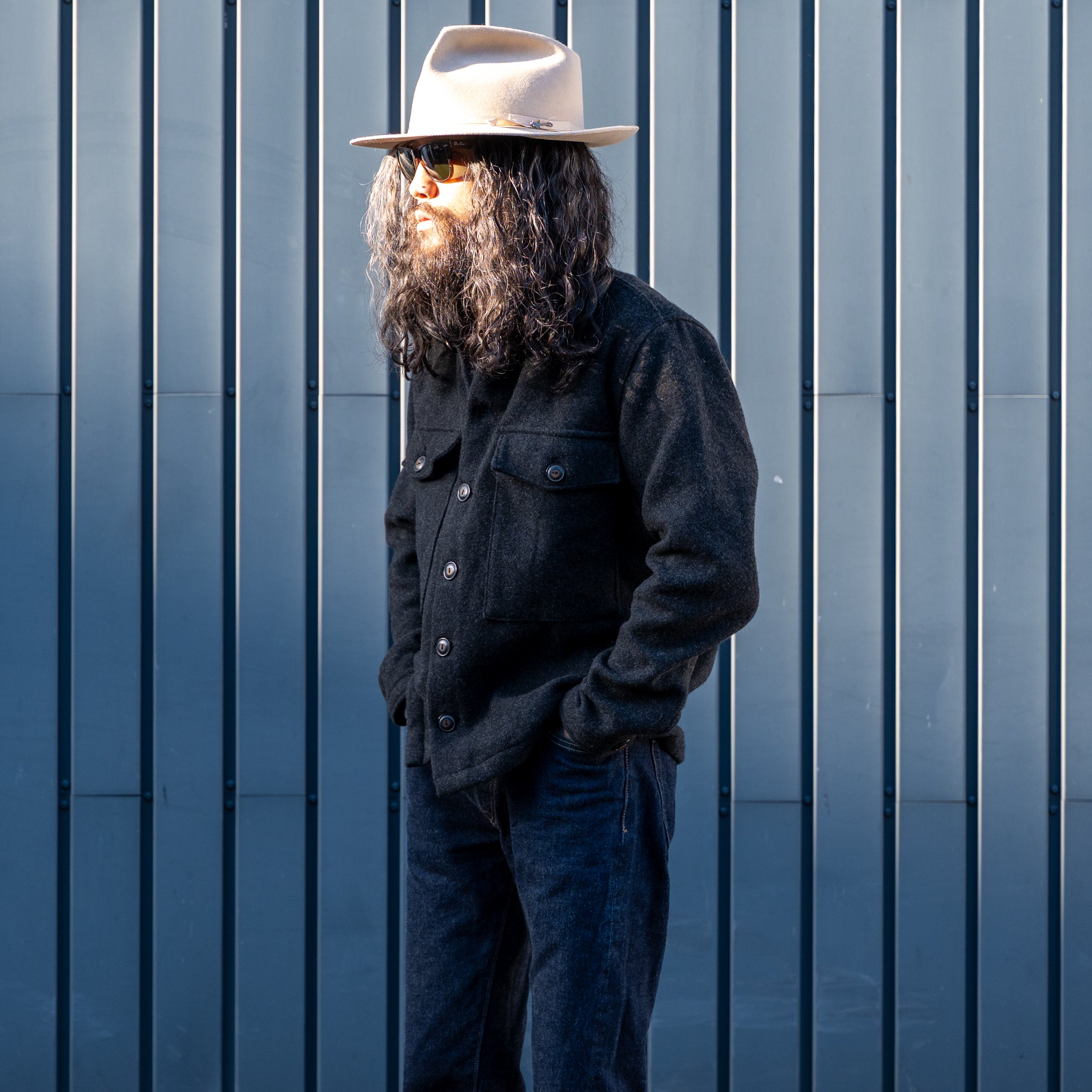 This classic wool overshirt offers warmth and durability, crafted with premium a 10 Oz yarn Dyed Melton wool blend from Japan.