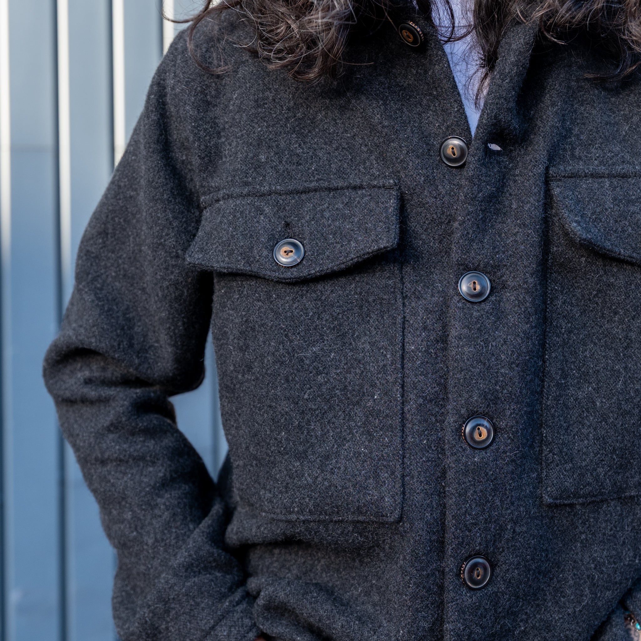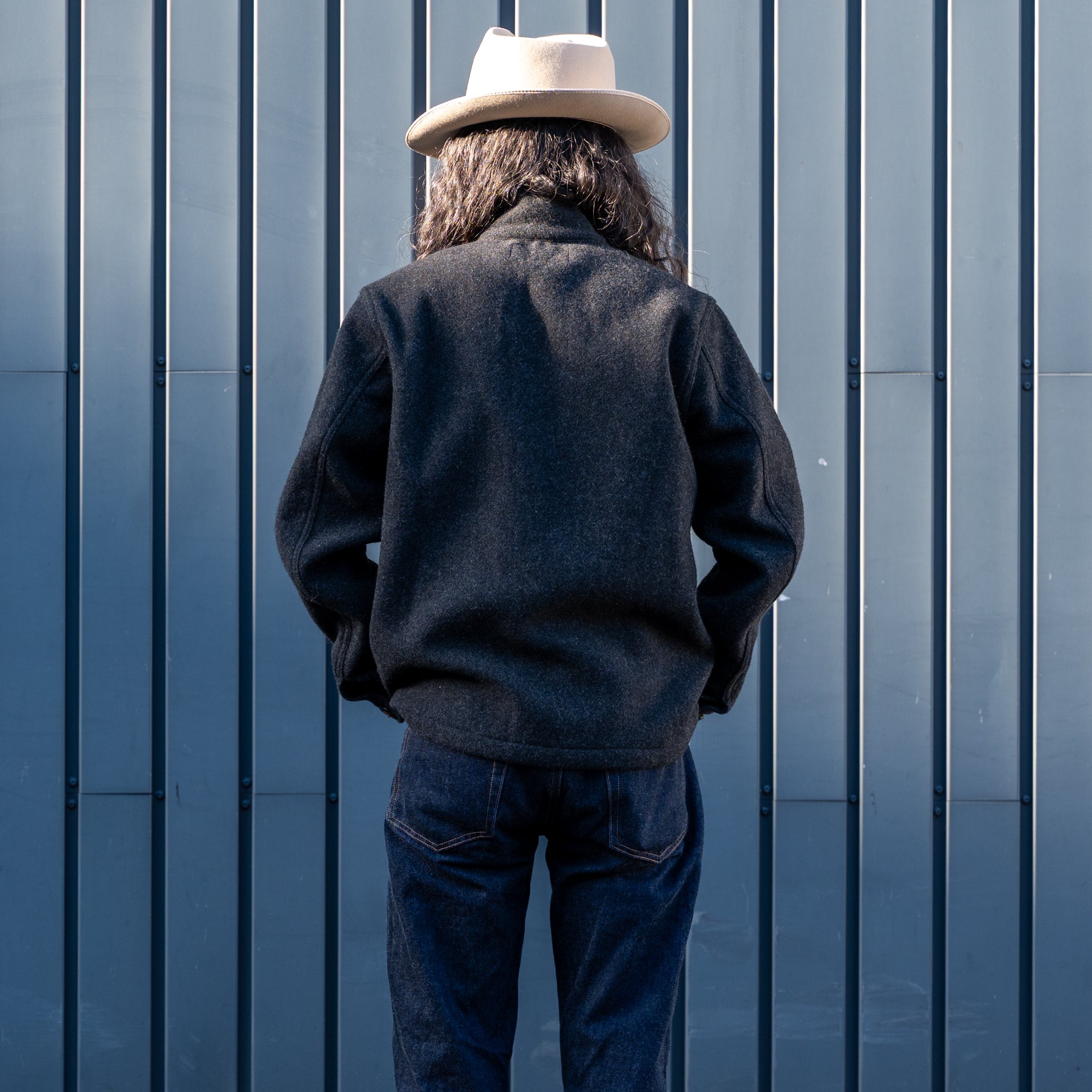 - 10 ounce yarn dyed melton wool blend from Japan