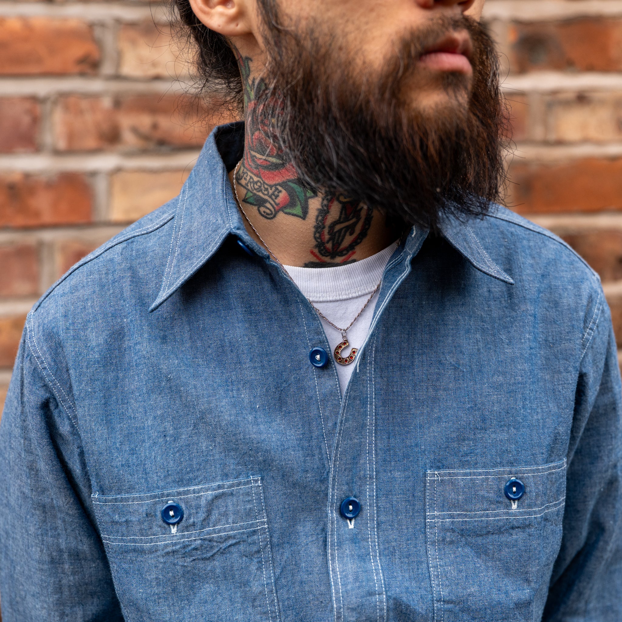 The Buzz Rickson’s Blue Chambray Work Shirt is a faithful reproduction of the utility shirts first issued by the U.S. Navy in the 1930s and refined through the 1950s. Built to last, this shirt balances rugged functionality with timeless style.